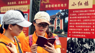 6月20日,觀眾在上海展覽中心內參觀。當日,“日出東方——上海市紀念中國共產黨成立95周年主題展”在上海展覽中心展出。當日,“日出東方——上海市紀念中國共產黨成立95周年主題展”在上海展覽中心展出。