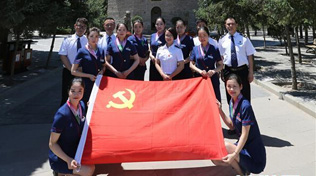 西安鐵路局西安客運段動車二隊黨總支在寶塔山下舉行“緬懷革命先烈,重溫入黨誓詞”主題活動(6月16日攝)。如今的延安,已難見黃土高坡沙塵飛揚,通過大力退耕綠化,加強污染防治,實施延河治理,延安展現出了地綠、天藍、水清的優美新貌。