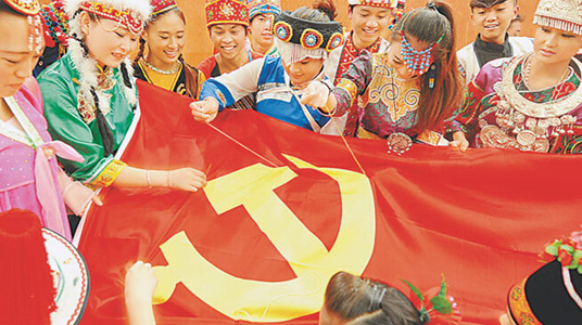 6月27日,為紀念建黨95周年,深入落實“兩學一做”學習教育,北京市朝陽區亞運村街道舉辦“我是黨員我來做”主題黨日活動。機關黨員干部、社區居民老黨員深入交流黨章學習心得,來自街道轄區中華民族博物院的少數民族職工、入黨積極分子圍在一起繡黨旗,為黨的95歲生日獻禮。