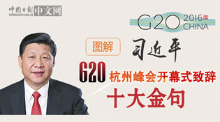 9月5日,二十國(guó)集團(tuán)(G20)領(lǐng)導(dǎo)人第11次峰會(huì)在通過了《G20領(lǐng)導(dǎo)人杭州峰會(huì)公報(bào)》后圓滿結(jié)束,習(xí)近平主席主持會(huì)議并致閉幕辭。杭州峰會(huì)共達(dá)成創(chuàng)紀(jì)錄的29項(xiàng)成果,在G20發(fā)展道路上樹立了一座中國(guó)豐碑。 詳細(xì)>>