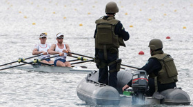 各國賽艇隊(duì)積極備戰(zhàn) 士兵在側(cè)確保安全