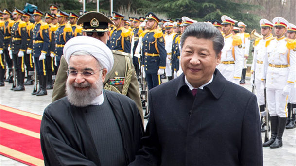 1月23日,國家主席習近平同伊朗總統魯哈尼在德黑蘭薩德阿巴德王宮舉行會談。