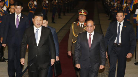 1月20日,國家主席習近平抵達埃及首都開羅,開始對埃及進行國事訪問。這是埃及總統(tǒng)塞西在開羅國際機場熱情迎接習近平。新華社記者 鞠鵬攝