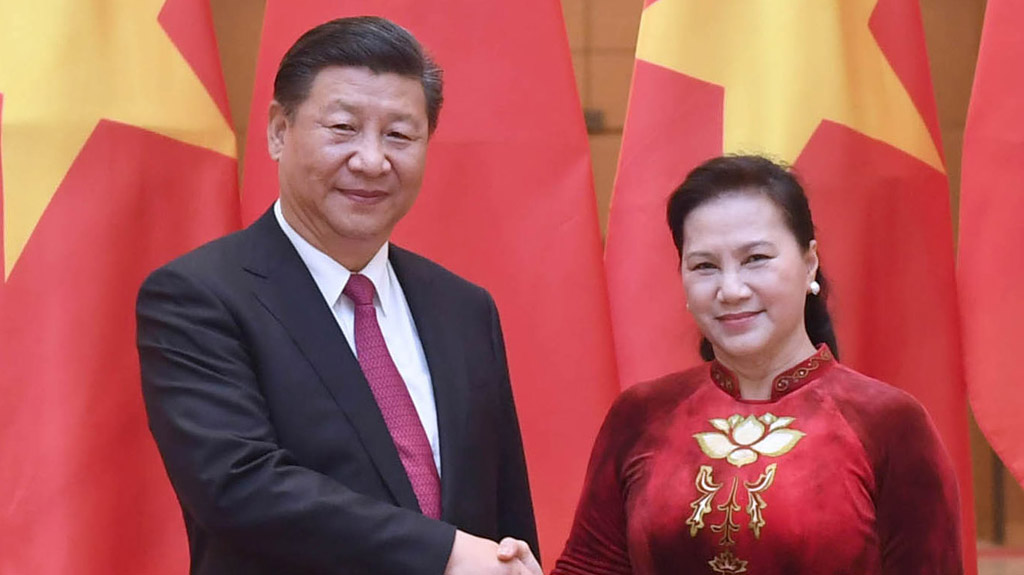 11月12日,中共中央總書記、國家主席習(xí)近平在河內(nèi)會見越南國會主席阮氏金銀。新華社記者 張鐸 攝 11月12日,中共中央總書記、國家主席習(xí)近平在河內(nèi)會見越南國會主席阮氏金銀。