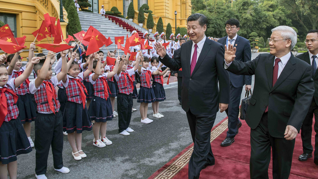11月12日,中共中央總書記、國家主席習(xí)近平在河內(nèi)越共中央駐地同越共中央總書記阮富仲舉行會談。新華社記者 姚大偉 攝 11月12日,中共中央總書記、國家主席習(xí)近平在河內(nèi)越共中央駐地同越共中央總書記阮富仲舉行會談。