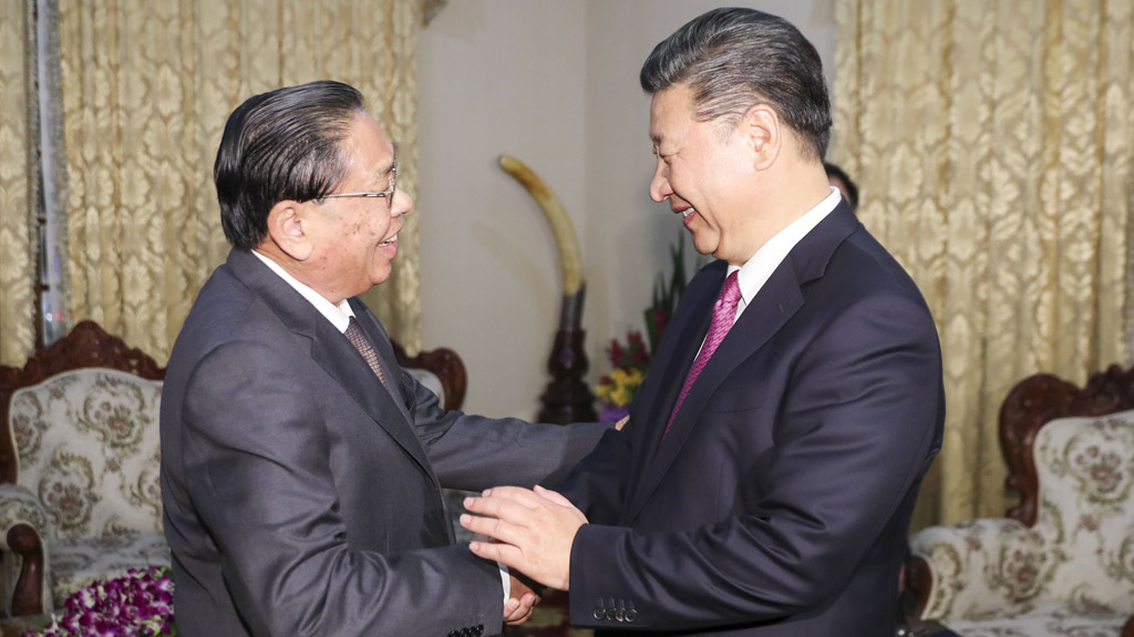 11月13日,中共中央總書記、國家主席習(xí)近平在萬象會見老撾人民革命黨中央委員會前總書記、前國家主席朱馬里。新華社記者 丁林 攝 11月13日,中共中央總書記、國家主席習(xí)近平在萬象會見老撾人民革命黨中央委員會前總書記、前國家主席朱馬里。