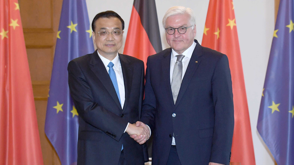 當(dāng)?shù)貢r間6月1日下午,國務(wù)院總理李克強在柏林總統(tǒng)府會見德國總統(tǒng)施泰因邁爾。新華社記者 張鐸 攝  當(dāng)?shù)貢r間6月1日下午,國務(wù)院總理李克強在柏林總統(tǒng)府會見德國總統(tǒng)施泰因邁爾。