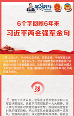 3月12日上午,中共中央總書記、國家主席、中央軍委主席習近平出席十三屆全國人大一次會議解放軍和武警部隊代表團全體會議并發表重要講話,這是他連續第六年出席全國人大軍隊代表團。中國日報網用6個字回顧6年來習近平兩會強軍金句。