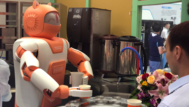 15日,2018世界機器人大會在北京召開,160多家企業(yè)的機器人展品亮相大會的博覽會。中國航天科技集團公司第一研究院第十八研究所所長朱成林表示,智能飲品機器人是在空間機械臂的基礎(chǔ)上,結(jié)合十八所專業(yè)技術(shù)特點進行成果轉(zhuǎn)化。