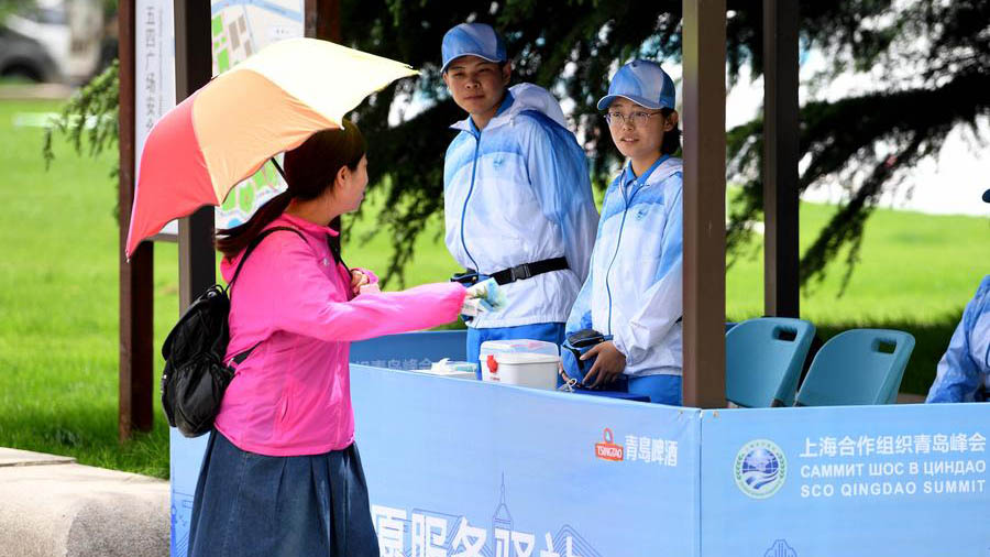 隨著上合組織青島峰會臨近,青島市街頭巷尾隨處可見志愿者,他們用自己的微笑和熱情為市民、游客和國內(nèi)外賓朋提供愛心志愿服務(wù)。