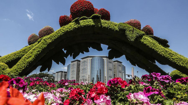 5月5日,在雁棲湖國際會議中心,工作人員在布置“一帶一路”國際合作高峰論壇的標志花壇。在成功舉辦2008年夏季奧運會、2014年APEC領導人會議之后,2017年5月14日,擁有3000多年建城史的古都北京又將迎來一個歷史與未來交融的盛會——“一帶一路”國際合作高峰論壇。
