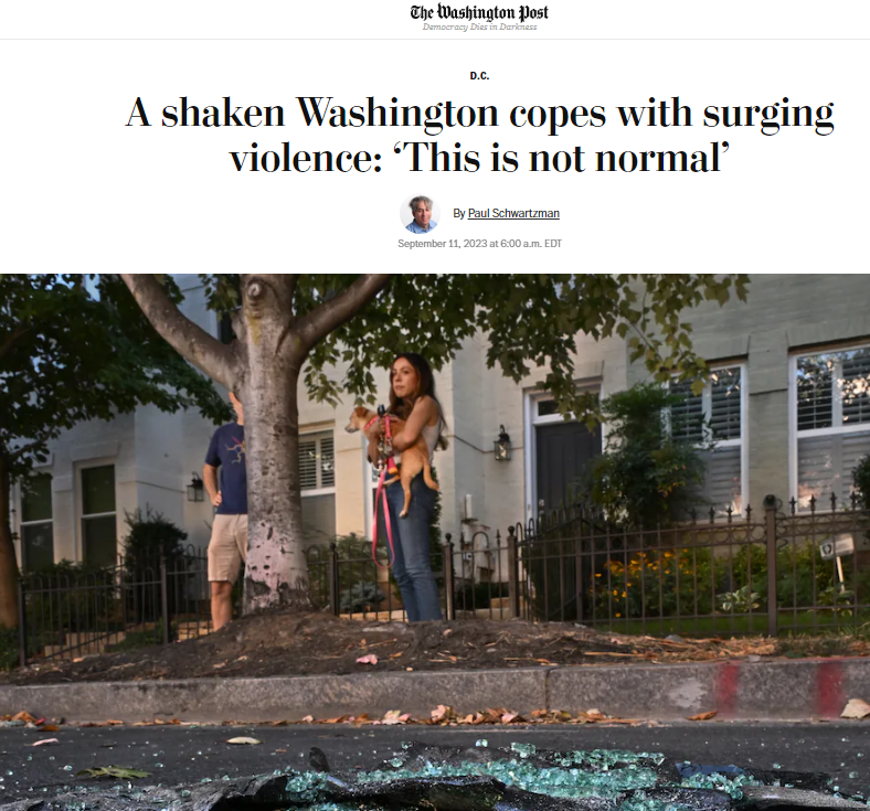 文章稱,在過去的一年里,華盛頓特區(qū)的犯罪率急劇上升,其中不乏兇殺案、肆無忌憚的槍擊案以及持槍少年劫持汽車的報道,這讓這座本已在努力從新冠疫情恢復(fù)的城市惶惶不安。