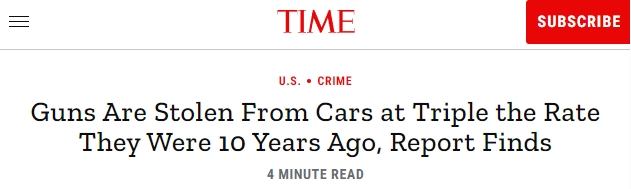 在美國,槍支被盜是一個大問題。美國煙酒火器和爆炸物管理局表示,盜竊是槍支最終落入犯罪分子手中的一個重要來源,它們往往會被用于其他犯罪活動。