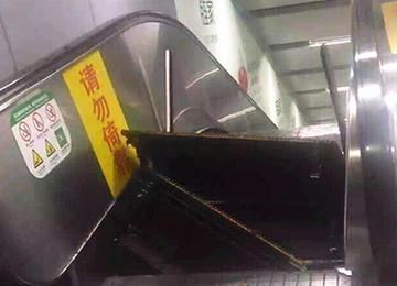 8月18日下午2點20分左右,上海地鐵虹口足球場站3號線與8號線換乘通道的一部自動扶梯,在運行時梯級突然跳起。”網友照片顯示,故障電梯的梳齒板與第一級電梯整個斷裂上翻,扶梯一側貼有“請勿靠近”的標語。
