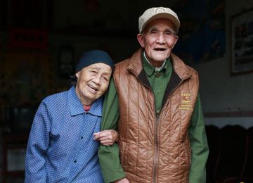 2006年4月9日,山西,姚自剛和老伴在院子里打秋千。2012年8月28日,福州市閩侯縣尚干鎮烏門村,77歲的林國龍拉起二胡名曲《梁祝》,以喚起“植物人”老伴的思維和記憶。