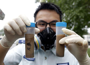 天津爆炸區域氰化物和土壤采樣向公眾展示