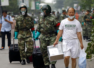 武警防化兵脫水昏迷 兩次倒在救援現場