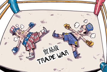美國總統特朗普帶領美國向中國、歐盟等發起貿易戰實為搬起石頭砸自己的腳。