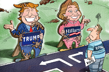 美國民主黨總統候選人希拉里和共和黨總統候選人特朗普皆丑聞纏身,美國選民今年將很難做出抉擇。