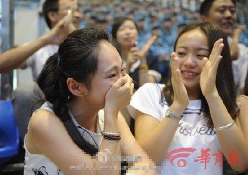 西北工業(yè)大學(xué)2010級(jí)電子信息學(xué)院探測(cè)制導(dǎo)畢業(yè)生蘇敬參加了閱兵方隊(duì),蘇敬的女友觀看閱兵式流下激動(dòng)的淚水。西北工業(yè)大學(xué)長安校區(qū)體育館內(nèi),5000余師生觀看閱兵式。西北工業(yè)大學(xué)2010級(jí)電子信息學(xué)院探測(cè)制導(dǎo)畢業(yè)生蘇敬參加了閱兵方隊(duì),蘇敬的女友觀看閱兵式流下激動(dòng)的淚水。