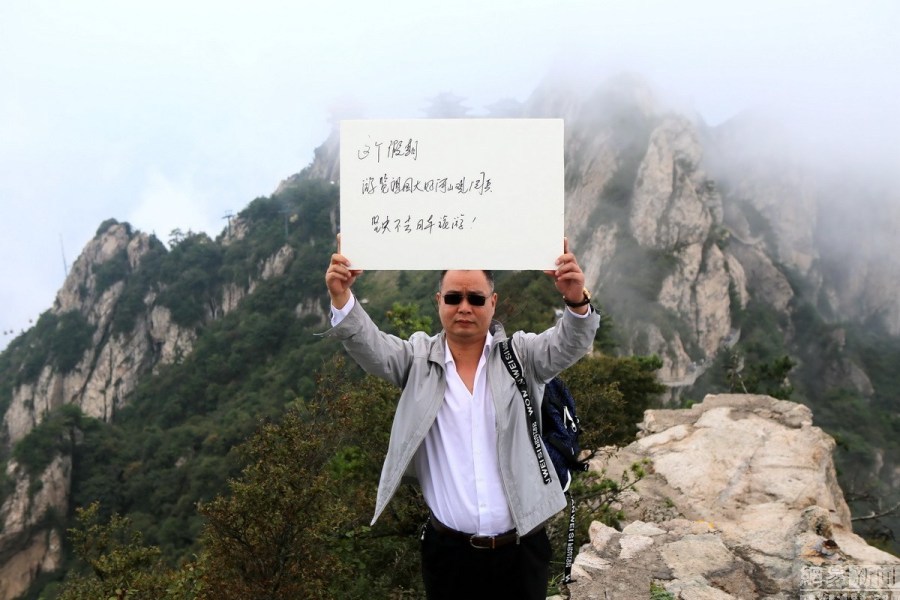 2015年9月3日,是中國人民抗日戰爭暨世界反法西斯戰爭勝利70周年紀念日假期第一天。河南洛陽,一名男子登上3000米絕壁懸崖,捧出五星紅旗展胸前,用手機播放國歌,并和著音樂一起引吭高歌,向人們舉起他的愛國宣言“這個假期,游覽祖國大好河山觀看大閱兵,決不去日本旅游”,男子的行為立即引起其他游客的共鳴,在他的感染下大家一起向國旗宣誓。