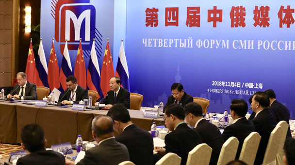 2018年11月4日,第四屆中俄媒體論壇在上海舉行。中共中央政治局委員、中宣部部長黃坤明和俄羅斯聯邦政府副總理阿基莫夫出席開幕式并作主旨演講。