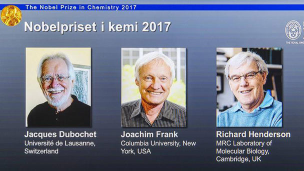 瑞典皇家科學(xué)院4日宣布,將2017年諾貝爾化學(xué)獎授予瑞士科學(xué)家雅克·杜博歇、美國科學(xué)家約阿希姆·弗蘭克以及英國科學(xué)家理查德·亨德森,以表彰他們在冷凍顯微術(shù)領(lǐng)域的貢獻。