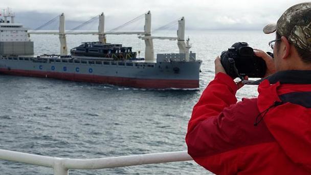 這是9月12日在楚科奇海與東西伯利亞海交界處的德朗海峽西口拍攝的“天健”輪(左)與“天樂”輪相遇的畫面。中國貨輪“天健”輪與“天樂”輪12日在北極東北航道上相遇。