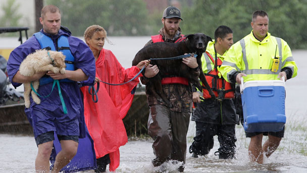 美國得克薩斯州遭颶風(fēng)襲擊引發(fā)洪災(zāi),志愿者和消防員幫助居民和寵物撤離。據(jù)報(bào)道,颶風(fēng)“哈維”25日登陸得克薩斯州,造成嚴(yán)重破壞,導(dǎo)致至少5人死亡。
