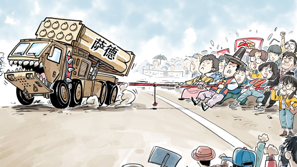 韓國民眾抵制政府部署薩德發(fā)射車。