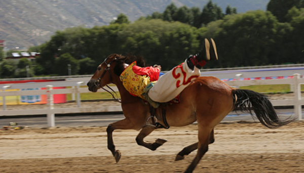 23日上午,時隔幾年,民族傳統(tǒng)馬術(shù)表演再次瀟灑回歸,在拉薩北郊賽馬場隆重開幕。女子單人分腿倒立表演中,馬匹快速奔跑時,運動員手抓馬鞍環(huán)與馬肚帶,完成馬上倒立動作。