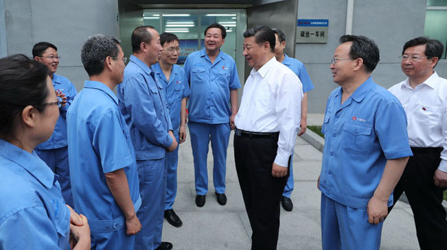 6月22日,中共中央總書記、國家主席、中央軍委主席習(xí)近平在山西太原考察企業(yè)。