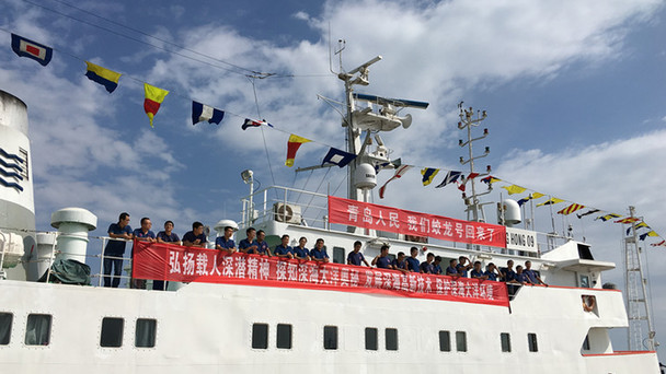 今天上午,向陽紅09號船搭載蛟龍?zhí)栞d人潛水器及全體科考隊員順利返回青島國家深海基地碼頭,這標(biāo)志著2017年蛟龍?zhí)栐囼炐詰?yīng)用航次(中國大洋38航次)順利結(jié)束。