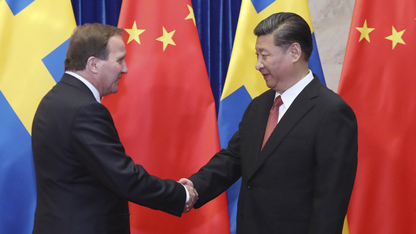 6月26日,國家主席習(xí)近平在北京人民大會堂會見瑞典首相勒文。