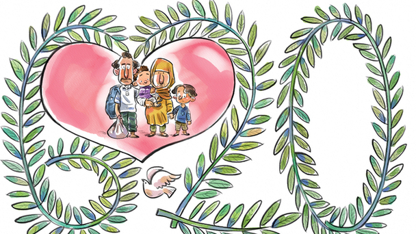 6月20日是一年一度的世界難民日,讓我們攜起手來,撥開硝煙彌漫,送出絲絲溫暖,救護他們,給他們人的生存環境和尊嚴!