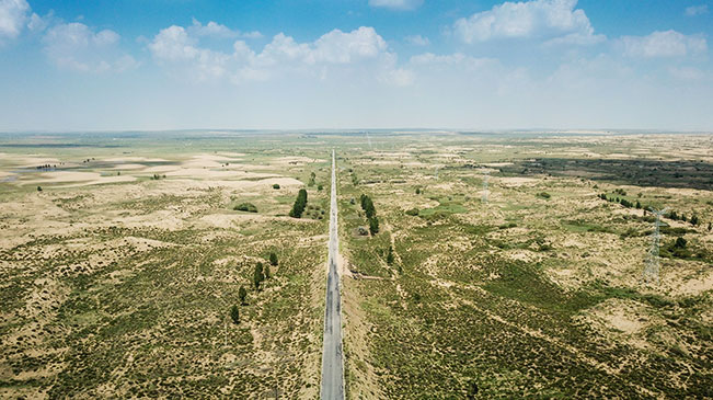 庫布其首條穿沙公路 矗立在大漠的無形豐碑