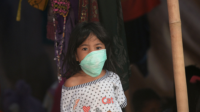 8月9日,在印度尼西亞龍目島地震災(zāi)區(qū),一名女孩戴著口罩在臨時帳篷里。印度尼西亞抗災(zāi)署9日下午確認,龍目島7.0級地震死亡人數(shù)已升至259人。8月9日,在印度尼西亞龍目島地震災(zāi)區(qū),一名女子在臨時帳篷里裝燈泡。
