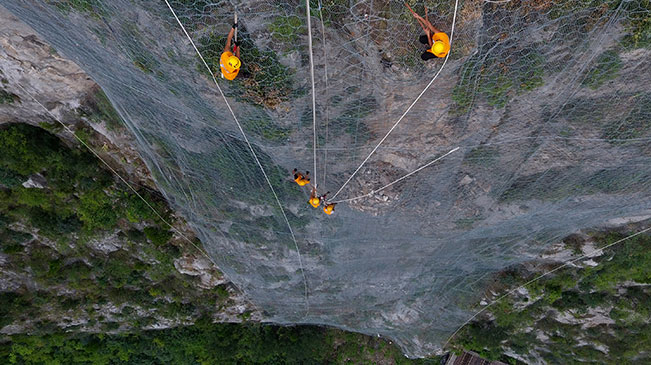 8月9日,搶險人員在侯月鐵路柏枝隧道上方懸崖進行碎石作業(yè)(無人機拍攝)。 新華社記者李嘉南攝  8月9日,搶險人員在侯月鐵路柏枝隧道上方懸崖進行碎石作業(yè)(無人機拍攝)。