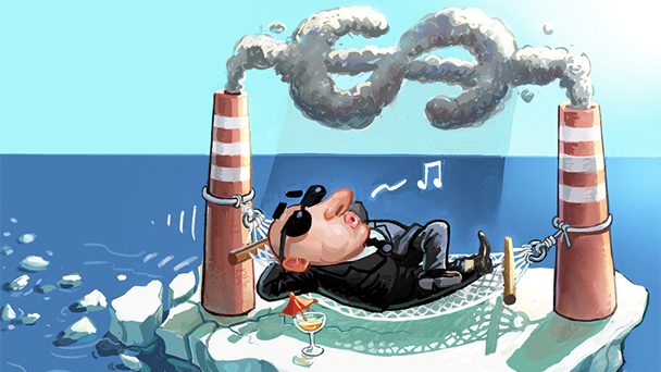 人類勿被眼前的利益所迷惑,選擇忽視全球變暖的事實會造成可怕的后果。