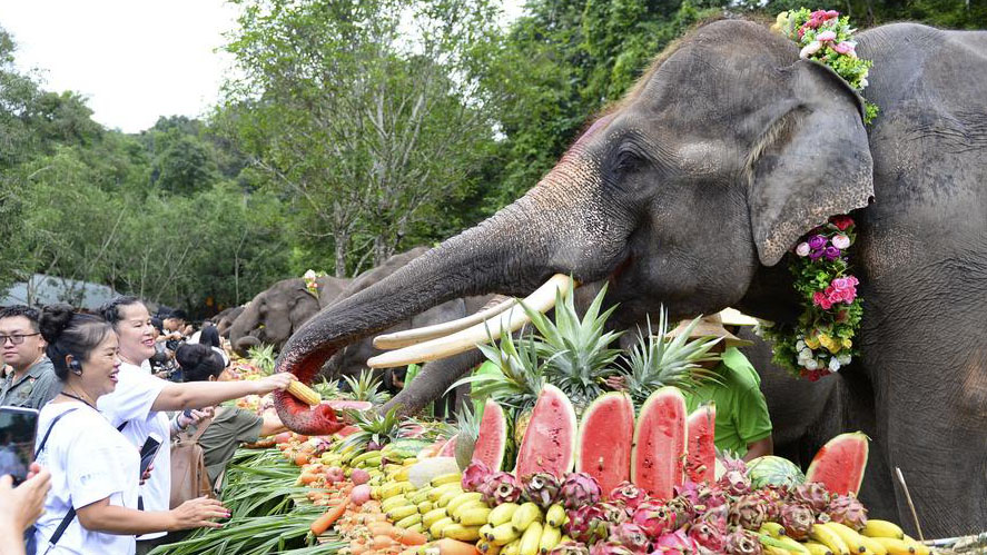 12日是世界大象日。云南省西雙版納傣族自治州野象谷景區(qū)舉行世界大象日活動,包含大象巡游、大象“水果盛宴”、救助象“羊妞”生日會等多項內(nèi)容。