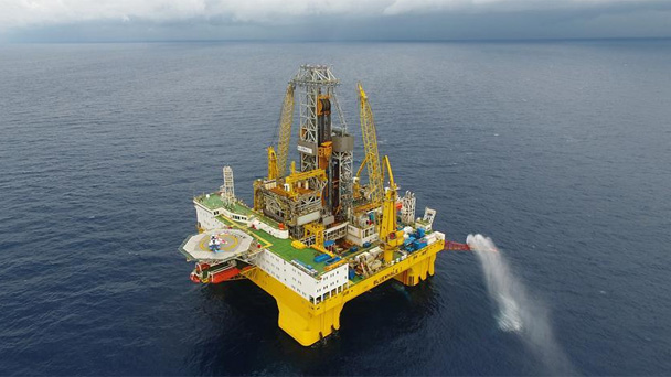 這是在我國南海神狐海域進行天然氣水合物試采作業的“藍鯨一號”鉆探平臺(5月16日攝)。由國土資源部中國地質調查局組織實施的我國海域天然氣水合物試采在南海神狐海域實現連續8天穩定產氣,試采取得圓滿成功,實現了我國天然氣水合物開發的歷史性突破。