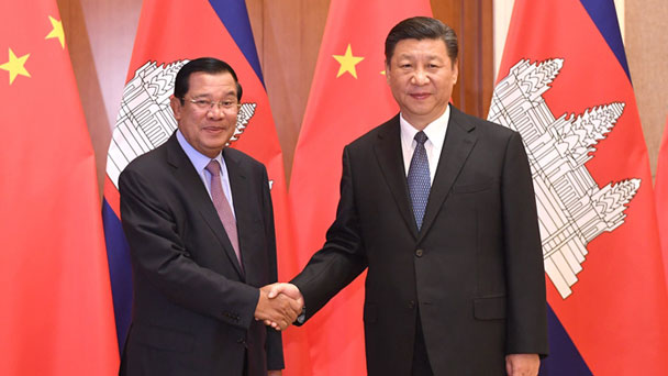 5月17日,國家主席習近平在北京釣魚臺國賓館會見柬埔寨首相洪森。新華社記者 饒愛民 攝  5月17日,國家主席習近平在北京釣魚臺國賓館會見柬埔寨首相洪森。新華社記者 丁林 攝
