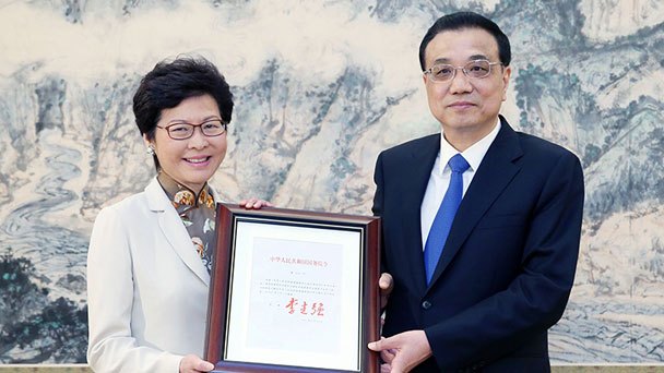 李克強向林鄭月娥頒發(fā)任命令