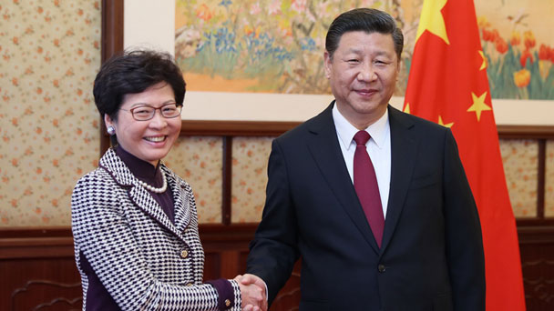 4月11日,國家主席習近平在中南海會見新當選并獲中央政府任命的香港特別行政區(qū)第五任行政長官林鄭月娥。