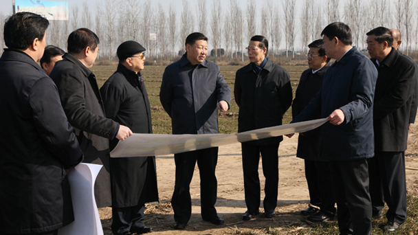 2017年2月23日,中共中央總書記、國家主席、中央軍委主席習近平在河北省安新縣考察雄安新區(qū)規(guī)劃建設工作。