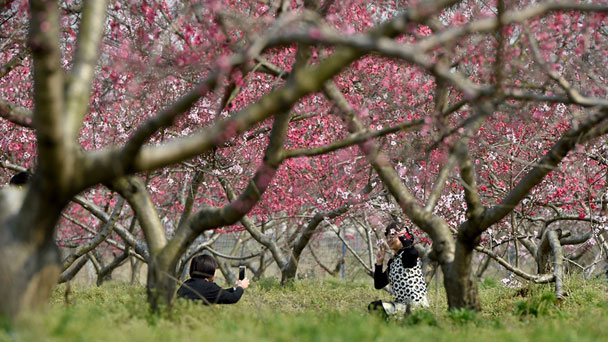 近日,安徽省合肥市廬陽區(qū)三十崗鄉(xiāng)的近5000畝桃花競相綻放,形成“十里桃花”醉春風(fēng)的詩意畫卷,吸引眾多市民前來踏青觀賞。