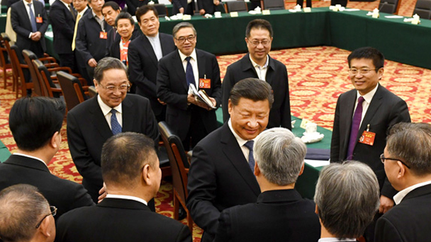 3月4日下午,中共中央總書記、國家主席、中央軍委主席習(xí)近平看望參加全國政協(xié)十二屆五次會議的民進(jìn)、農(nóng)工黨、九三學(xué)社委員,并參加聯(lián)組會,聽取意見和建議。新華社記者 饒愛民 攝  3月4日下午,中共中央總書記、國家主席、中央軍委主席習(xí)近平看望參加全國政協(xié)十二屆五次會議的民進(jìn)、農(nóng)工黨、九三學(xué)社委員,并參加聯(lián)組會,聽取意見和建議。