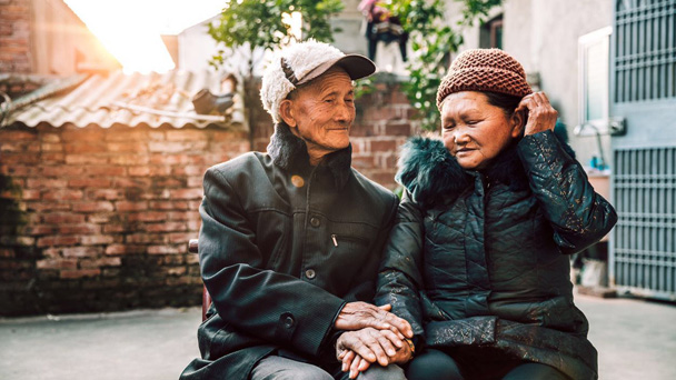 女攝影師朱思敏 @吃米的豬HOMAI 在湖北農(nóng)村婆家過年期間,拿起相機為18對60歲以上的老年夫婦拍下寫真,記錄了一幅幅恩愛的畫面。