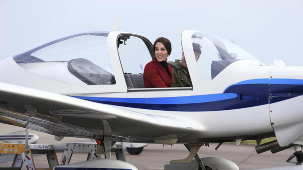 凱特王妃參觀空軍基地 身著紅裝登戰(zhàn)機