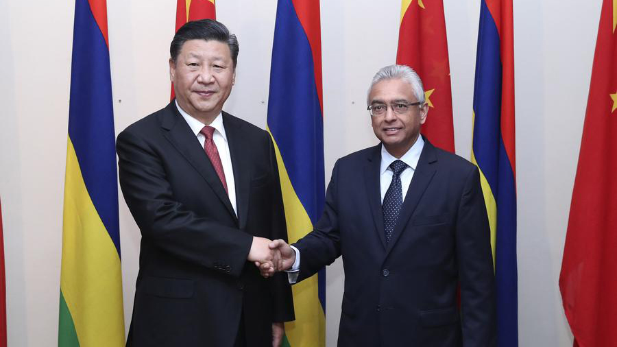 7月28日,國家主席習近平在毛里求斯會見毛里求斯總理賈格納特。習近平積極評價毛里求斯獨立50年來取得的不凡成就,贊賞毛里求斯歷屆政府一貫秉持對華友好政策。7月28日,國家主席習近平在毛里求斯會見毛里求斯總理賈格納特。